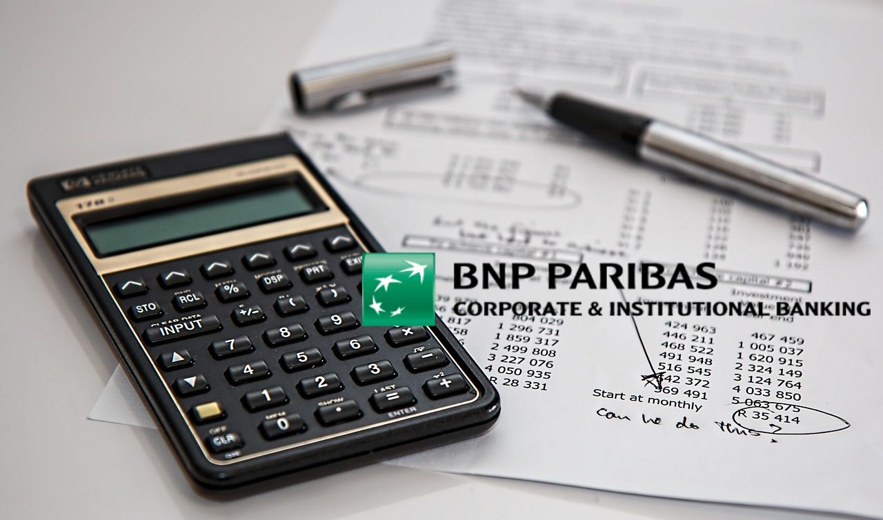 calcolatrice con numeri e logo BNP Paribas