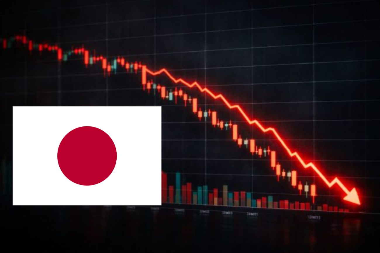 grafico in forte ribasso e bandiera del Giappone